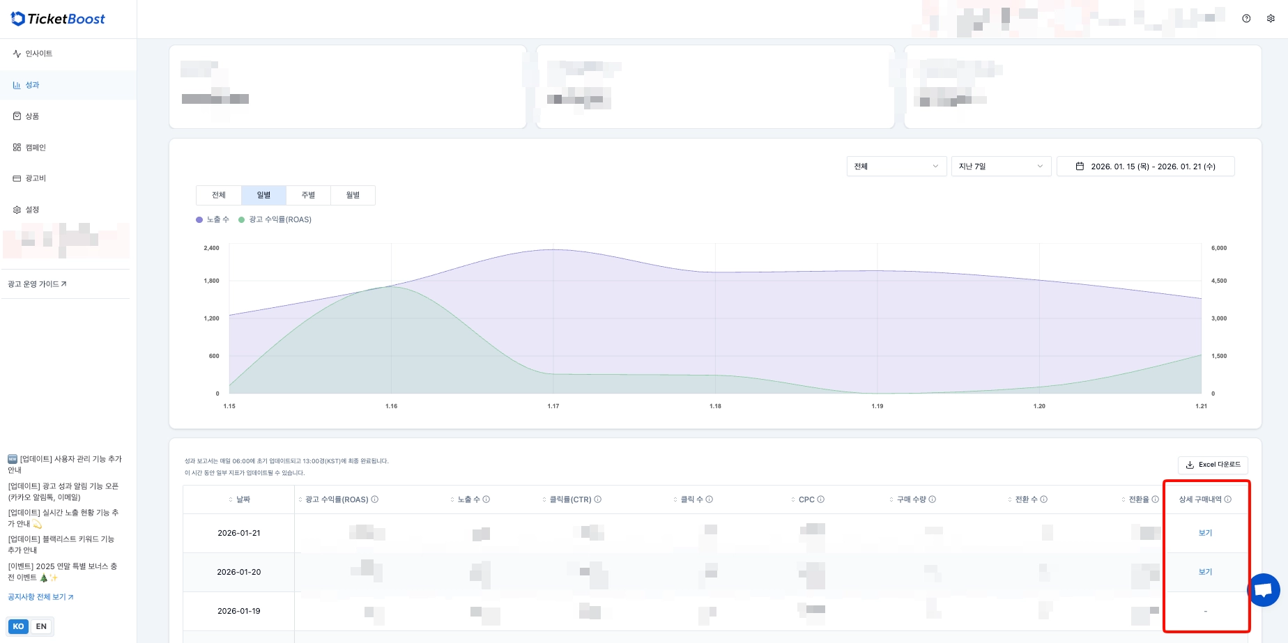 ๊ด๊ณ ํด๋ฆญ ํ ๋ฐ์ํ ๊ตฌ๋งค ์ ํ์ ์์ธ ์ ๋ณด๋ฅผ ํ์ธํ ์ ์๋ ๊ธฐ๋ฅ์