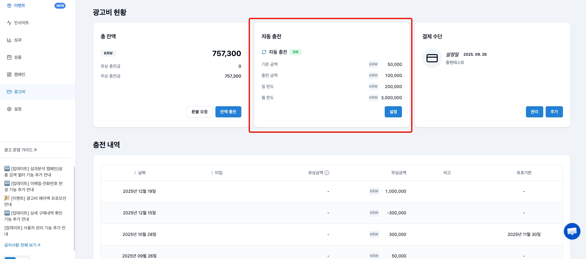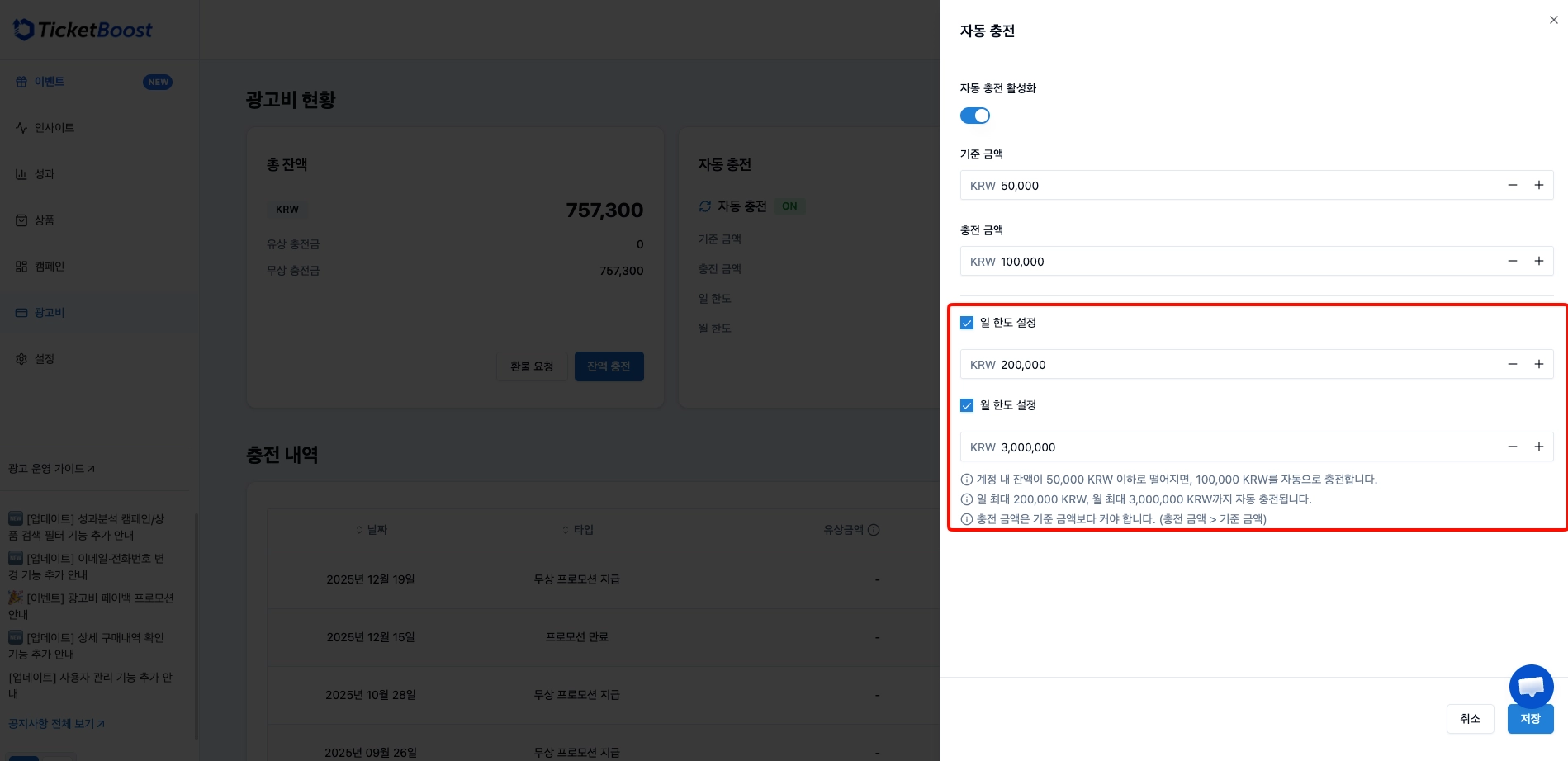 이제 자동충전에 일/월 한도를 직접 설정하실 수 있습니다!
